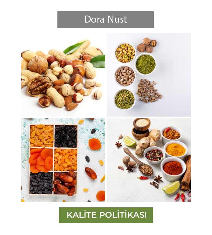 Dora Nuts olarak, kaliteyi en üst düzeyde tutmayı ve müşterilerimize en taze, doğal ve güvenilir ürünleri sunmayı hedefliyoruz. Kalite politikamızın temel prensipleri şunlardır: